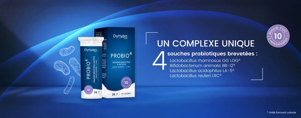 Découvrez notre complexe Probiotiques, une synergie de 4 souches brevetées et stables, scientifiquement validées.