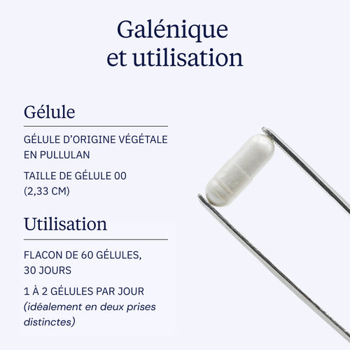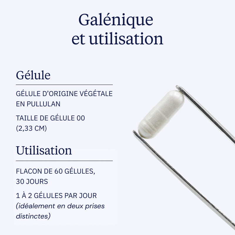 1 gélule par jour : pour accompagner le bien-être au quotidien. 2 gélules par jour : pour un soutien plus marqué.