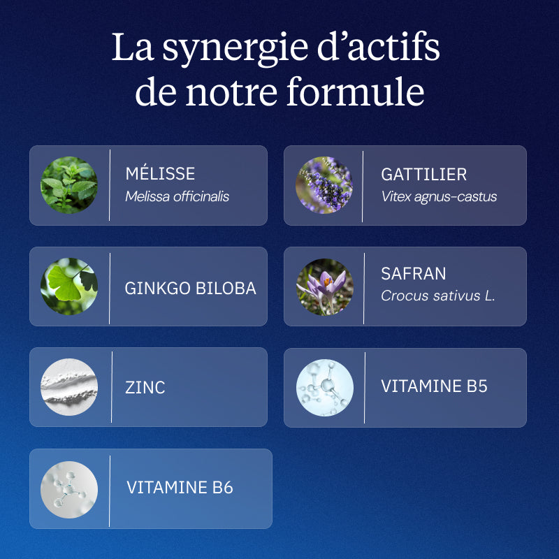 3 gélules par jour pour maintenir un bon confort prémenstruel grâce au gattilier et au safran.