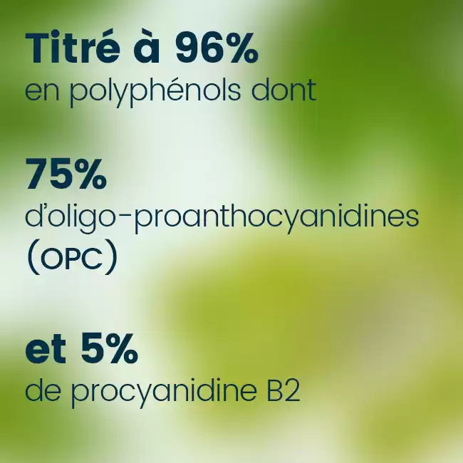 | Dont 75% min. en procyanidines (OPC) | 112,5 mg |