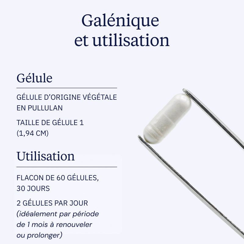Les études scientifiques se déroulent sur des périodes de 1 à 6 mois de supplémentation continue. À renouveler après une pause de quelques semaines, en fonction des besoins.