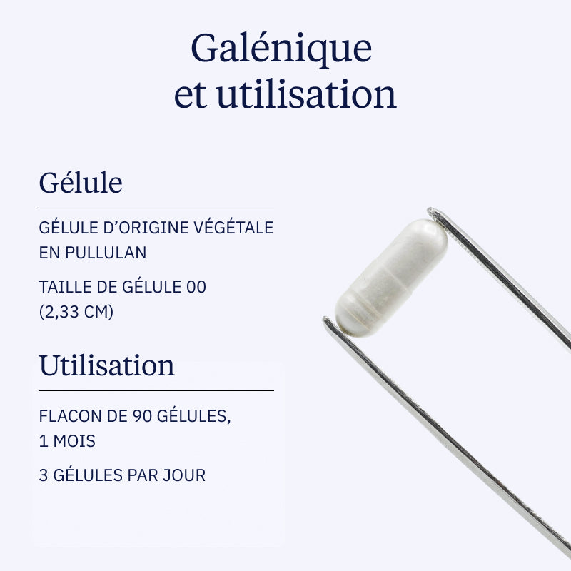 2 gélules le matin ou dans la journée, pour soutenir la concentration et la mémoire ;