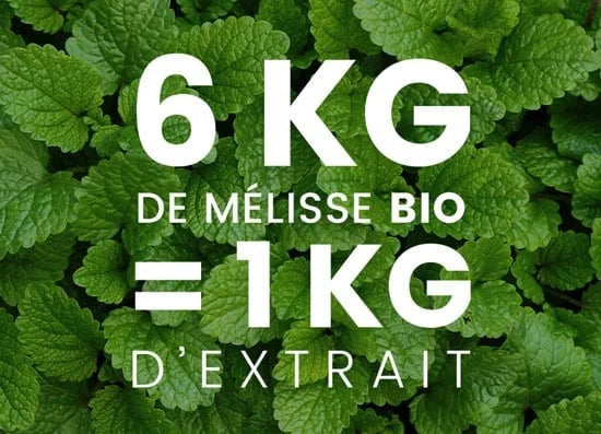 | Extrait de feuilles de Mélisse BIO* (Melissa officinalis) | 600 mg |