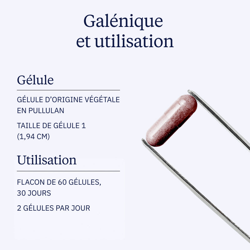 1 gélule le matin et 1 gélule le midi, pour un effet progressif et une meilleure biodisponibilité sur la journée.