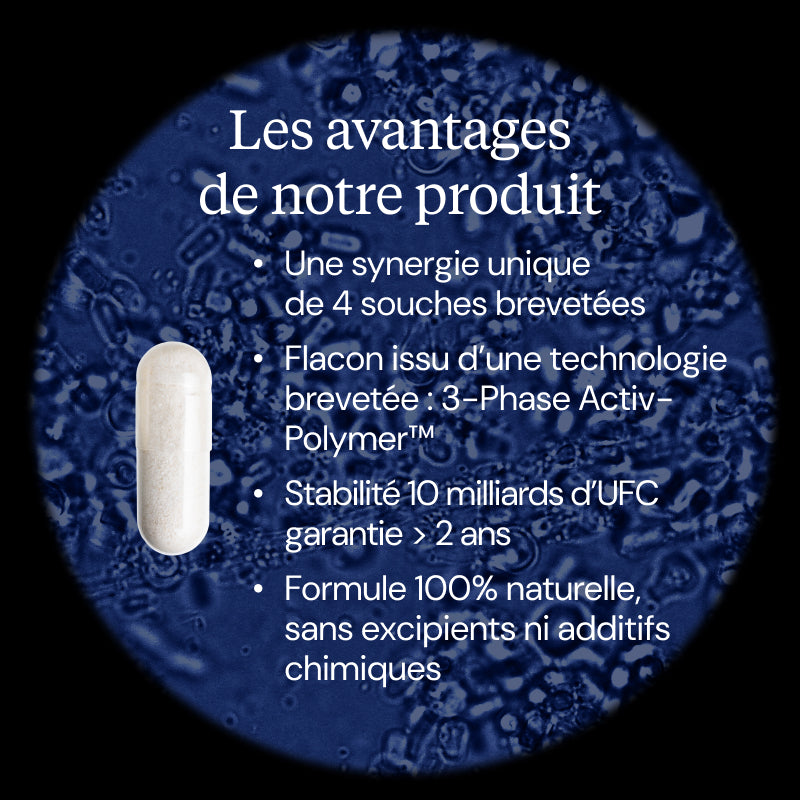 FORMULÉ AVEC 100% DE SOUCHES CLINIQUEMENT VALIDÉES