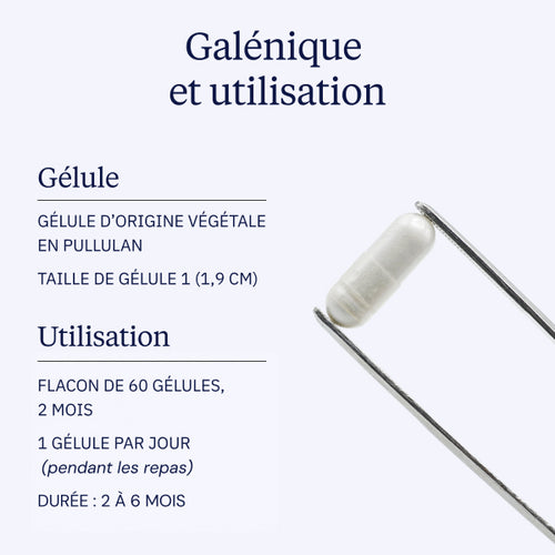 2 à 6 mois de manière ininterrompue, selon les besoins. Plusieurs périodes de prises dans l’année sont recommandées en entretien.