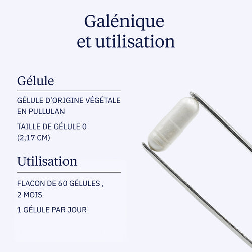 1 gélule par jour (≈ 300 mg de trans-resvératrol pur et micronisé) : dose optimale pour une protection cellulaire et antioxydante quotidienne.