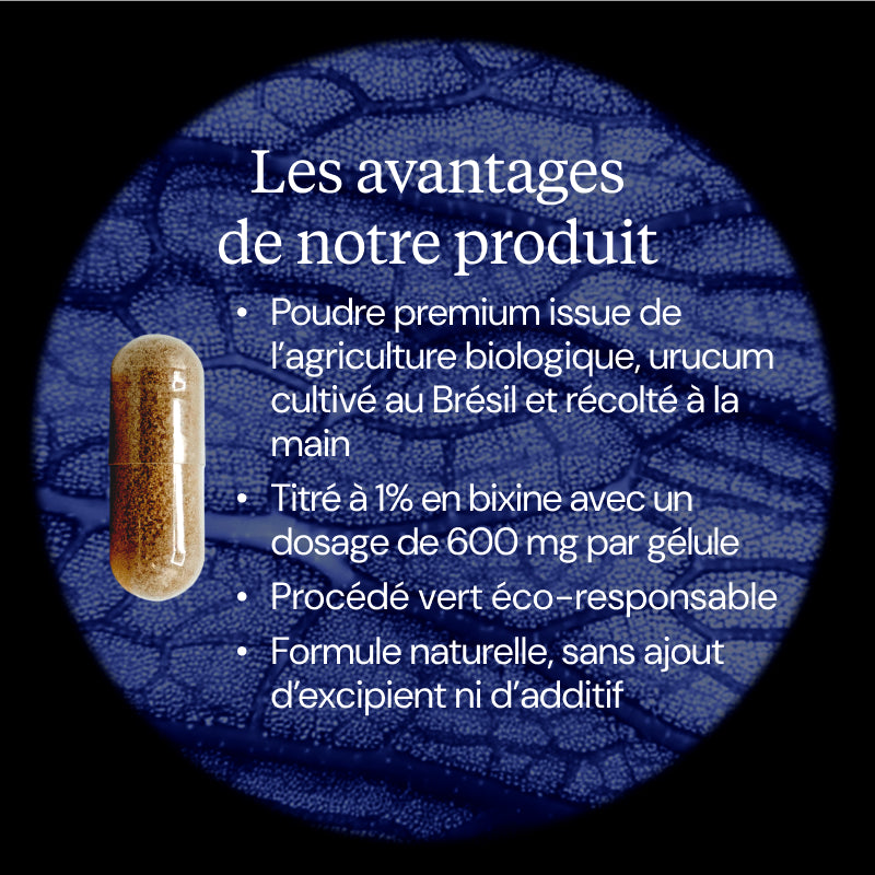 | Graines d'urucum* (Bixa orellana) | 2400 mg |