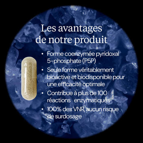 Avaler la gélule avec un grand verre d’eau. Pour un effet synergique, la vitamine B6 peut être associée à la vitamine B12, à la vitamine B9 et au magnésium.