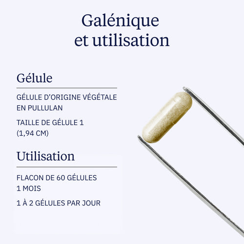 1 gélule par jour : dose étudiée pour soutenir les fonctions nerveuses et psychologiques normales.