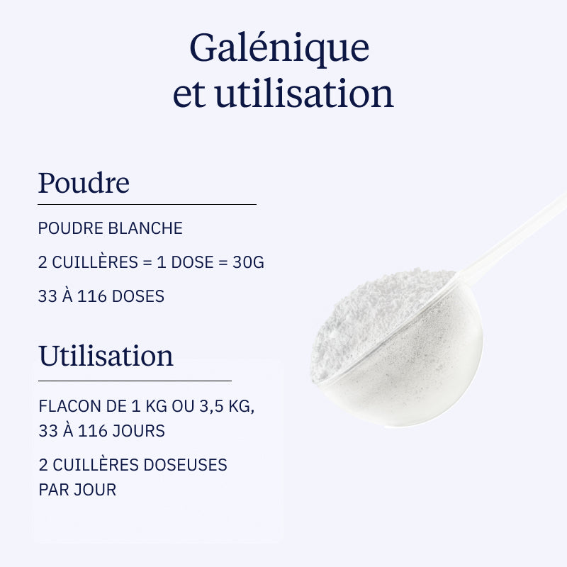 Recommandée pour les seniors, les femmes ménopausées ou toute personne souhaitant préserver la densité minérale osseuse et soutenir la structure du squelette. Les protéines participent à la formation du collagène, indispensable à la solidité osseuse.