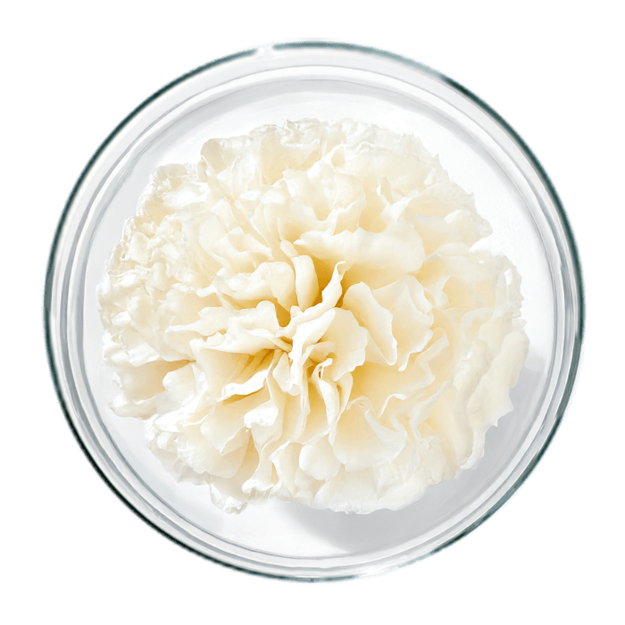 Après une récolte manuelle, le champignon Tremella fuciformis passe par une extraction hydro-alcoolique. Aucun solvant controversé n’est utilisé : uniquement de l’eau et de l’alcool. Le ratio d’extraction de 500 : 1 permet l’obtention d’une matière première premium puisque cela signifie qu’il faut 500 kg de cette matière, pour obtenir un seul kg d’extrait hautement titré en polysaccharides, dont fait partie l’acide hyaluronique.