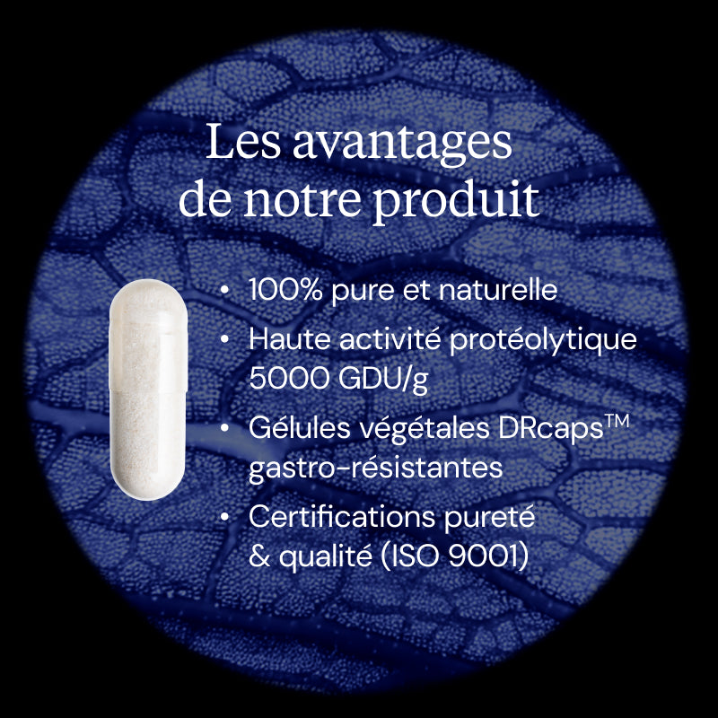 Idéal pour les personnes souhaitant un apport naturel en enzymes protéolytiques, notamment en cas de repas copieux ou riches en protéines.