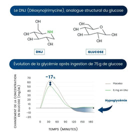 | Mûrier blanc (Morus alba L.) titré à 5% en 1-déoxynojirimycine (DNJ) : | 360 mg | |