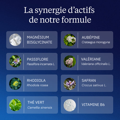 | Passiflore* (Passiflora incarnata L.) titrée à 10% en polyphénols et 4% en vitexine | 200 mg | |