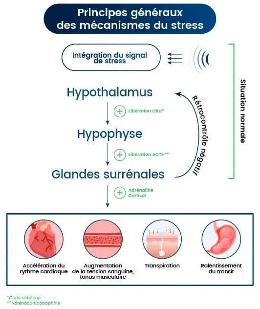 1 mois minimum, renouvelable selon les besoins. Les effets directs sont perçus en 30 à 60 min. Pour une efficacité durable sur le stress, la durée est de 2 à 3 mois.