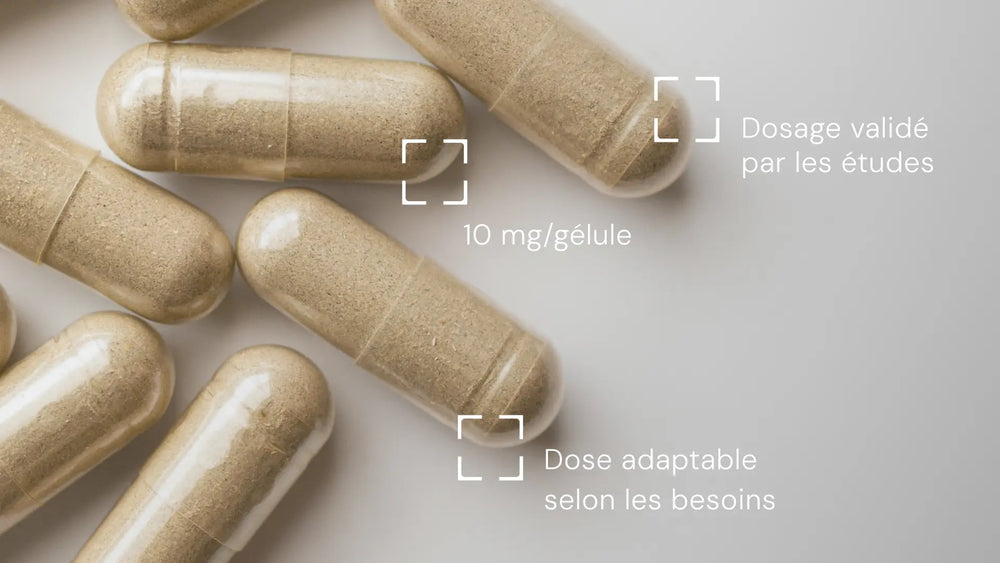 • 1 gélule / jour (10 mg) : routine de base, entretien sur la durée.