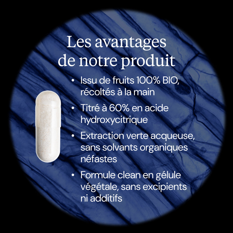 Notre extrait de Garcinia BIO fait l’objet d'analyses qualité sur chaque lot pour s’assurer de son efficacité et son innocuité. La teneur en hydrocycitrate est analysée par la méthode de référence, la chromatographie en phase liquide haute performance (HPLC), garantissant une teneur minimum de 60%. L’absence de contaminants microbiologiques, de solvants résiduels, de métaux lourds et de pesticides est également validée sur chaque lot.