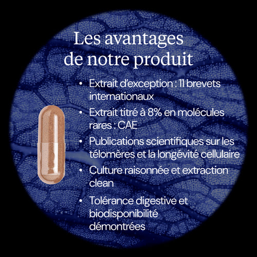 - Avançant en âge, qui cherchent un actif performant pour optimiser la taille de leurs télomères ainsi que la protection de l’ADN cutané contre les effets des radicaux libres.