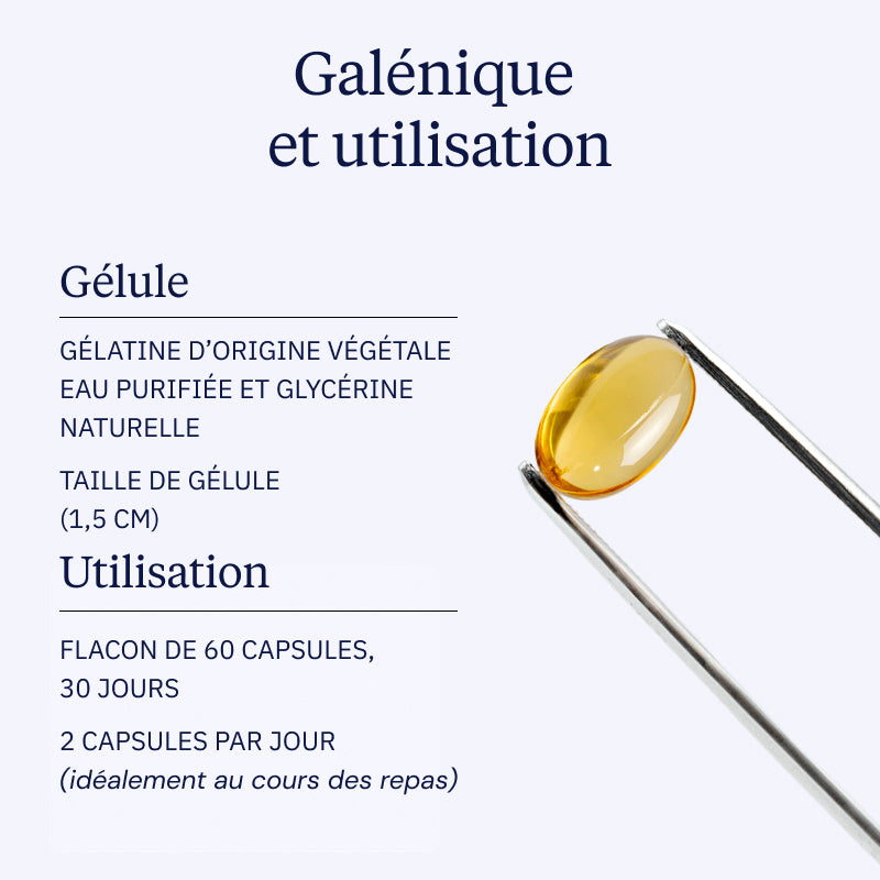 À prendre au cours d’un repas contenant des graisses saines.
