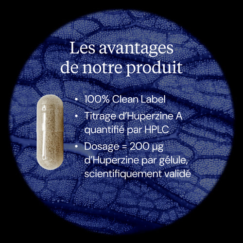 | Extrait d’Huperzia serrata (parties aériennes) | 20 mg |