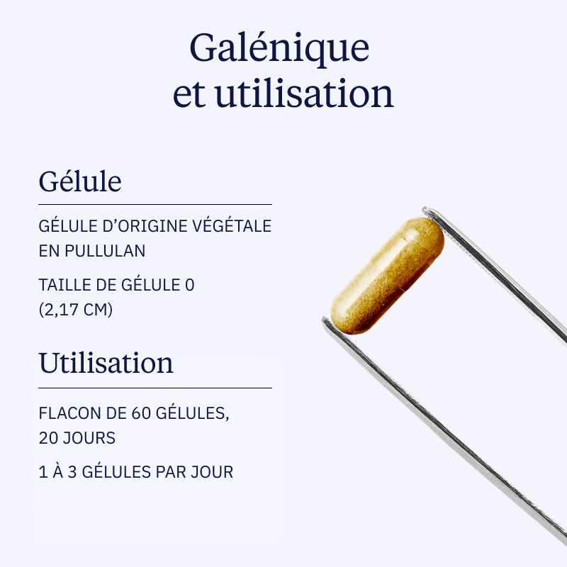 1 à 3 gélules par jour selon l'intensité des besoins immunitaires.