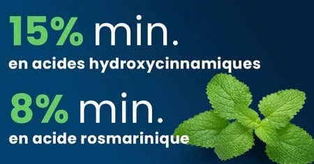 | Extrait de feuilles de Mélisse BIO* (Melissa officinalis) | 600 mg |