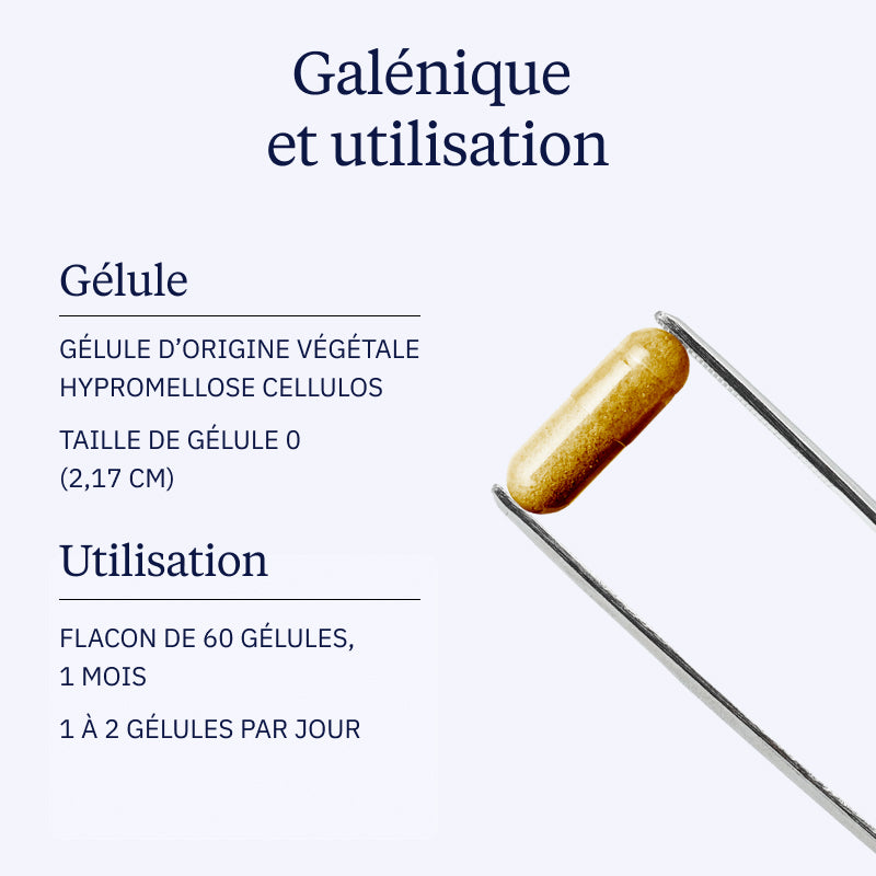 1 gélule par jour: Le matin ou en journée, selon le moment où vous avez le plus besoin d'agir sur la détente et la sérénité. 2 gélules par jour: 1 gélule matin, 1 gélule le soir, pour un effet apaisant continu.