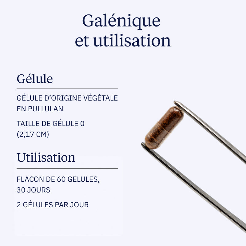 Une gélule le matin et une le soir pour un effet tonique prolongé et une assimilation équilibrée.