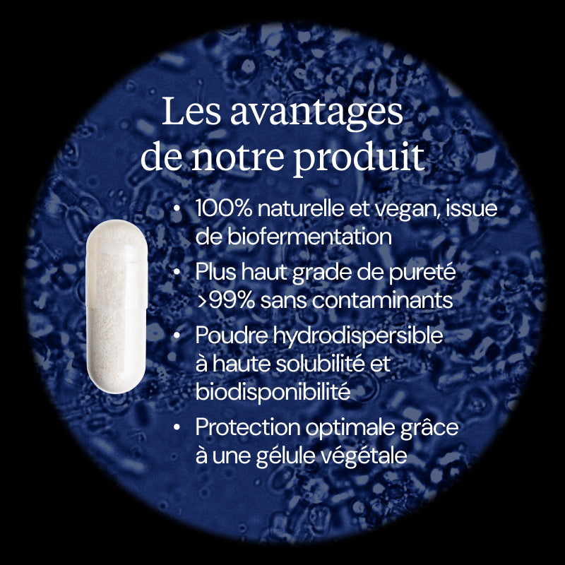 • Biofermentation 100% naturelle, vegan, biosourcée