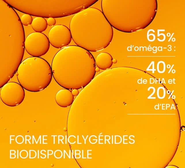 La forme triglycérides est 1,7 fois mieux assimilée que les formes ethyl-esters retrouvées dans certaines huiles de poissons ¹