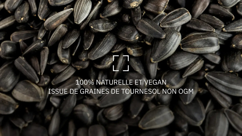 Lécithine issue de graines de tournesol non-OGM standardisée en phosphatidylsérine, triglycérides à chaînes moyennes (TCM) de coco, fibres d'acacia, tunique d'origine végétale (pullulan).