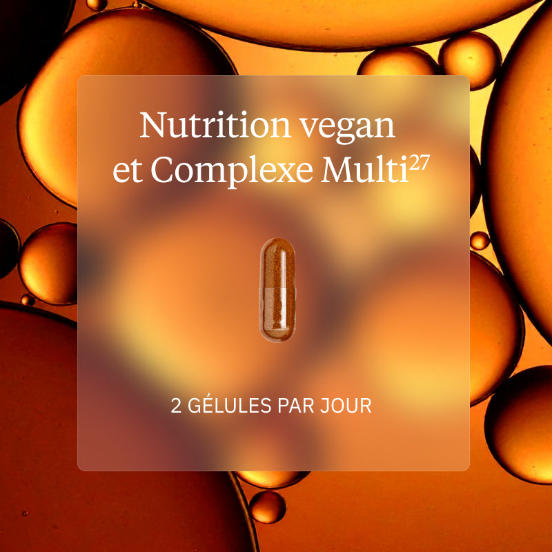 - Protéine végétale Bio : 2 cuillères doseuses de 30 ml (équivalent à 30 g) par jour. - Complexe Multi27 : 2 gélules par jour. - Oméga-3 végétal : 1 capsules végétales par jour.